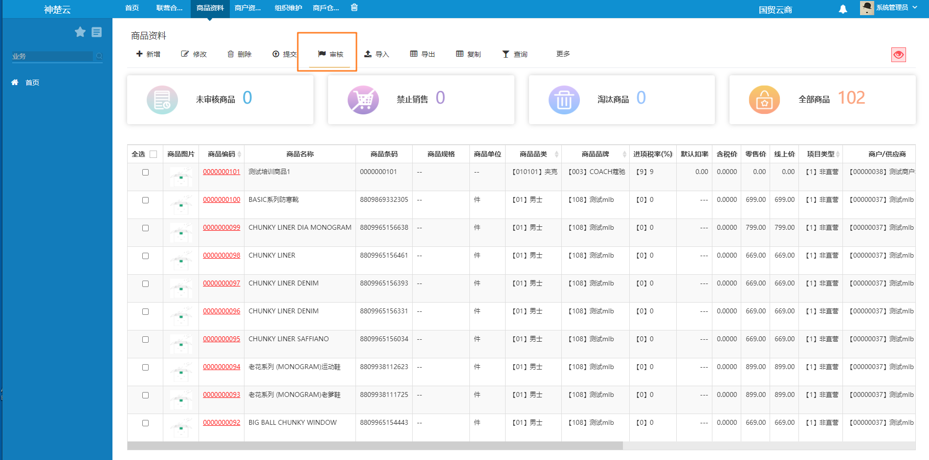 1. 项目,商户,商品,合同 2. 采购,入库,出库,盘点,报损 3. 销售,退款 4. 日结 本文档的目的是为了详细阐述如何在奥特莱斯项目中,针对客户提出的商户单品进销存管理需求,对现有的神楚云系统进行改进和扩展。由于神楚云系统目前仅对自营店提供进销存管理功能,本文档将提出相应的解决方案,以实现对商户的进销存管理需求的支持。 **神楚云后台**1.新建项目 路径:基础管理-组织用户管理-组织维护 创建一个新的项目  1. 新建商户资料 路径:合同管理-商户管理-商户资料维护 3.新增商品 路径:销售管理-商品管理-商品资料-新增 注意:新增商品时要勾选对应的商品门店 新增商品后,确认无误,对商品进行审核  4.新增合同 路径:合同管理-合同管理-联营合同维护-新增 新增合同后,要进行审核和执行  合同执行后会,会自动生成商户店铺  5.仓库管理 路径:商户进销存管理-商户仓库管理 5.1自动创建仓库功能:当新增店铺时,会自动生成一个默认商户仓库。默认仓库不可删除  5.2新增仓库 一个商户可创建多个仓库 若想继续新增仓库,点击新增,可创建新的店铺仓库。  6.商户入库管理 路径:商户进销存管理-商户入库管理  点击新增  选择基本信息后,点击添加商品  选择添加的商品后,填写收货数量,点击保存  验收单新增成功,审核后,单据生效  7.商户库存盘点维护 路径:商户进销存管理-商户库存盘点维护-盘点单设置  根据选择的基础信息,可以定位到盘点仓库,选择  保存成功后,盘点单为设盘状态,设盘状态可删除和作废  点击启用 1. 盘点单启用后,商户可进行盘点操作、 路径:商户进销存管理-商户盘点录入单-新增初盘 初盘单据可多次新增   点击审核,审核盘点录入单 1. 选择初盘单据,点击【初盘数据汇总】则会对已审核的初盘单数据进行汇总 在状态为启用和初盘时【初盘数据汇总】可多次操作,数据会累加 路径:商户进销存管理-商户库存盘点维护-初盘数据汇总    10.商户进行复盘操作 路径:商户进销存管理-商户盘点录入单-新增复盘 复盘单据可多次新增  创建复盘单据后,需要审核  1. 复盘单据审核后,在库存盘点维护界面点击【复盘数据汇总】 复盘数据汇总的数据取最新审核的数据,多次创建复盘单,审核后,点击【复盘数据汇总】会覆盖原有数据,不会累加。 路径:商户进销存管理-商户库存盘点维护-复盘数据汇总  1. 结盘,当复盘数据汇总后,如不需要再次复盘,可进行结盘 路径:商户进销存管理-商户库存盘点维护-结盘  盘点结束 1. 商户损益维护 路径:商户进销存管理-商户损益维护-新增  1. 商户盘点盈亏报表 可查看商户库存盘点结盘后的盈亏结果 路径:商户进销存管理-商户盘点盈亏报表 1. 商户库存查询  仓库库存明细查询-商品名称,可跳转到仓库商品数量变动台账明细表  **微商户小程序** **创建商户营业员账号** **路径:合同管理-商户管理-商户营业员维护**  **微商户小程序增加了商户进销存板块** **功能包含:无采购单验收、报损单、盘点单创建、盘点录入单、库存查询功能** **** 1无采购验收单 字段显示:编号、**项目、店铺、**仓库、收货日期  无采购验收单新增 **列表字段:单据编号、项目、店铺、合同、仓库、收货日期、备注(备注非必填)** 合同需手动选择  无采购验收单新增-商品信息 可通过添加验收商品和扫码两种方式添加商品信息  扫码添加和点击添加验收商品  填写验收数量  审核验收单  2.损益单、新增、查看 损益单 **字段显示:编号、项目、店铺、报损/报溢仓库、创建人、创建日期**  损益单新增 **字段显示:单据编号、项目、店铺、报损/报溢仓库、单据类型、减库存类型、备注(备注非必填)**  损益单查看 **字段显示:单据编号、项目、店铺、报损/报溢仓库、单据类型、减库存类型、备注** 已审核的页面无修改和审核按钮,未审核的页面可修改和审核。  3.盘点单维护 微商户小程序**新增盘点单维护**功能,用于盘点单的创建、汇总、结盘,修改,作废等 设盘:创建盘点单成功后,单据为设盘状态,**只有设盘状态的盘点单可删除和修改** 作废:只有启用、初盘、复盘的盘点单才能作废;  **4.盘点单创建**  **盘点单新增商品信息** 点击新增,跳出新增弹窗,输入商品编码后自动带出条码、名称、单位、数量。点击提交,显示已提交后可继续新增单品,如不需要新增则点关闭,回到商品信息页面。  **盘点单创建完成** 盘点单创建成功后,单据显示设盘状态,点击可进入详情页 点击启用,盘点单启用成功  **5.新增初盘单据**   6.盘点单创建-初盘数据汇总7.**新增复盘单据** 同初盘单据操作 **8.复盘单据汇总**  **9.结盘单据** 选择结盘后,单据进入结盘列表页。  **10.库存查询和库存台账** 项目和店铺为必选项,品类品牌颜色尺码为非必填,点击商品信息可进行页面跳转。  库存台账 **新增库存台账功能,通过点击商品条码/品名跳转。选择仓库后下方可显示该仓库的商品信息。** 表单字段:项目、店铺商品、库存数量,根据库存查询页面显示 表格字段:单据类型、数量、剩余数量、创建时间